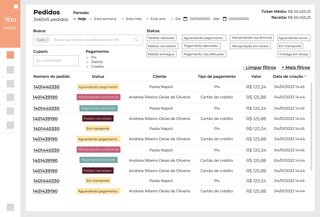 • Filtros padronizados sem estilização dos campos e soltos na tela.